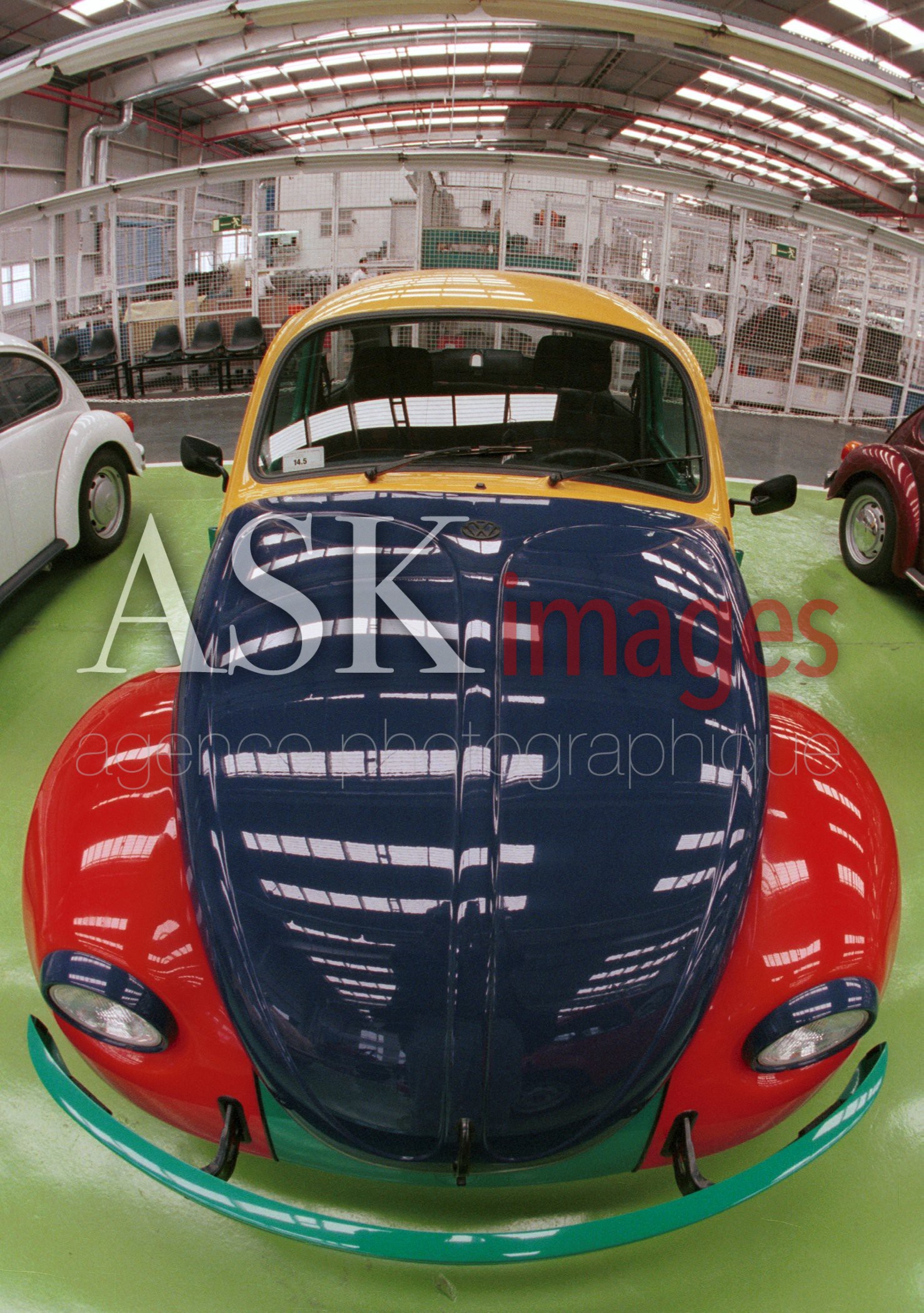 | Description | Puebla, Puebla, Mexico: A custom painted VW Beetle made for a Mexican celebrity on display at the Volkswagen factory in the city of Puebla, state of Puebla, Mexico. Each of the Beetles, called the Sedan in Mexico, is essentially made by hand. It's only remaining production line for the Beetle in the world. There are more than 80,000 Beetles in use as taxis in Mexico City. The Beetles are primarily sold in Mexico, but are few are also exported to Latin America and the Caribbean. ©Jack Kurtz / The Image Works |