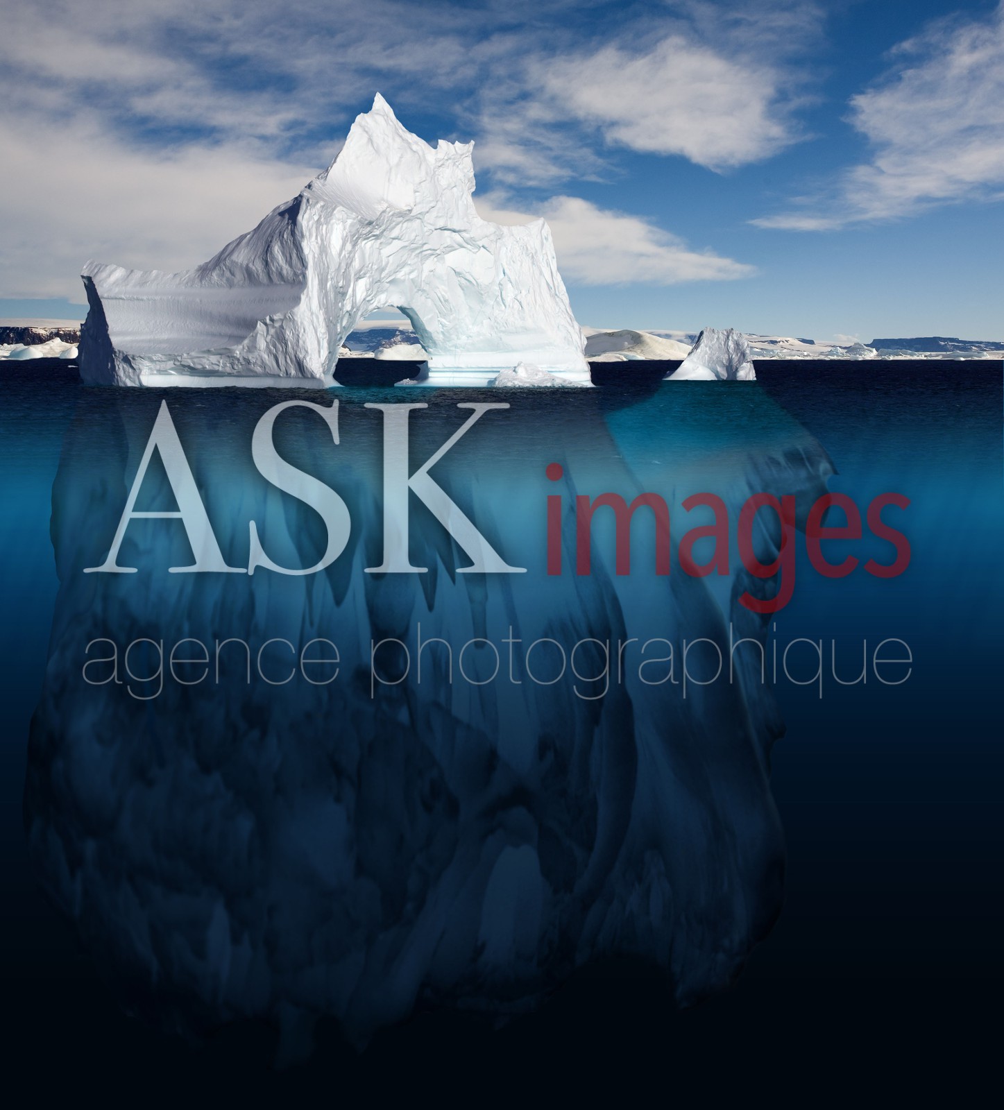 | Description | Ice arch Iceberg showing the portion underwater that is sculpted by the sea, Polar regions, Antarctica |