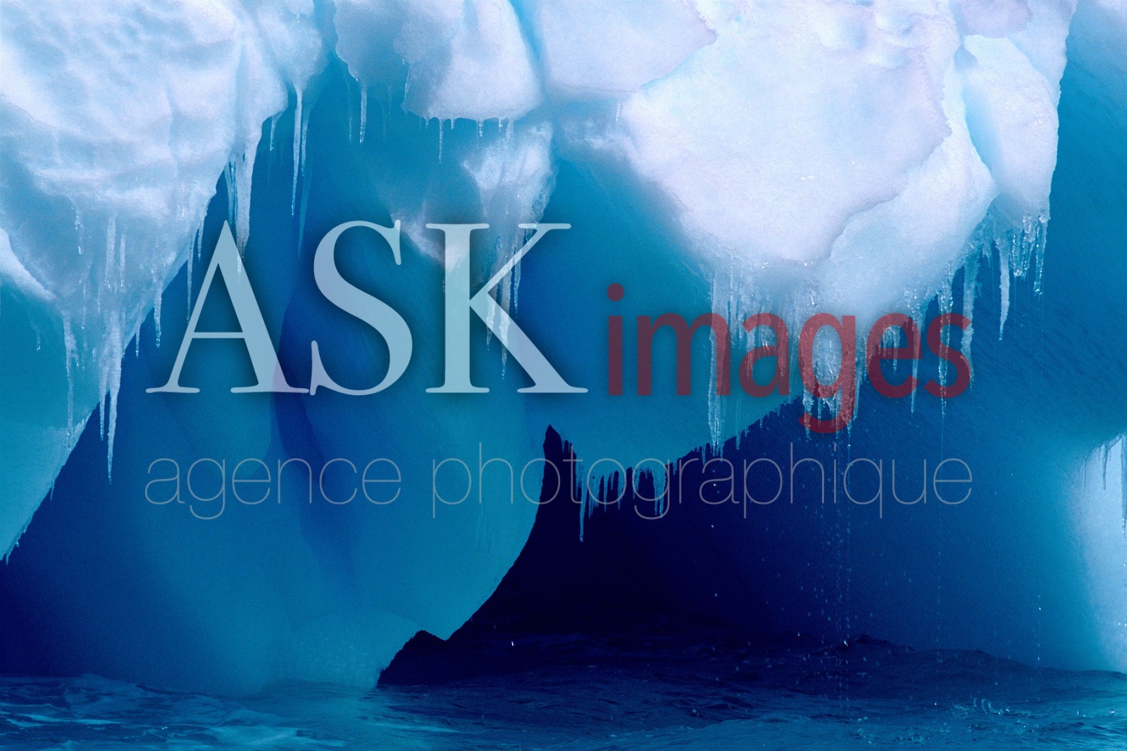 | Description | Icicles hang from the edge of a small blue iceberg as the summer thaw sets in, Antarctica |