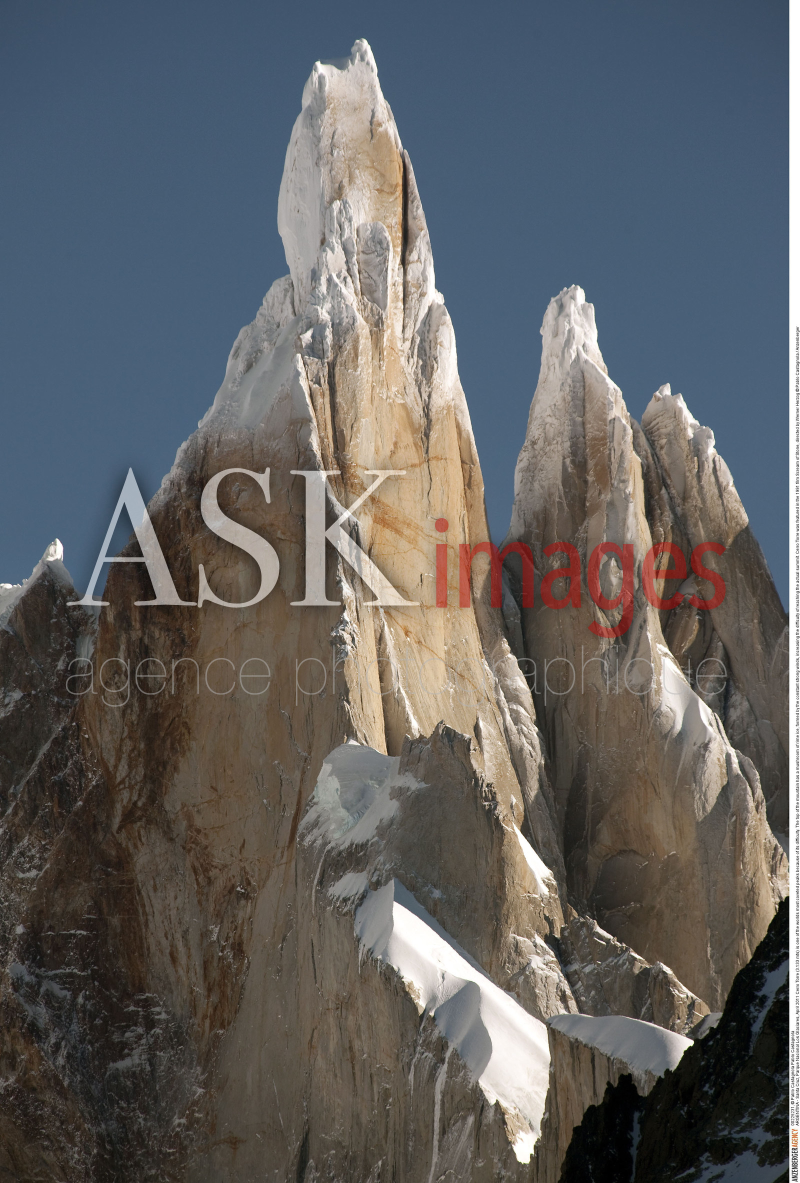 DescriptionARGENTINA - Santa Cruz, Parque Nacional Los Glaciares.Cerro Torre (3.133 mts) is one of the worlds most coveted peaks because of its difficulty. The top of the mountain has a mushroom of rime ice, formed by the constant strong winds, increasing the difficulty of reaching the actual summit. Cerro Torre was featured in the 1991 film Scream of Stone, directed by Werner Herzog .© Pablo Castagnola / Anzenberger