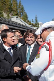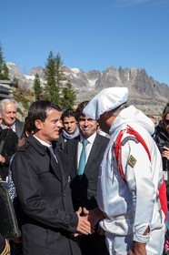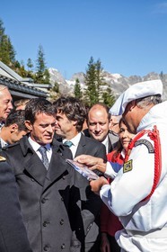 • French 1er Minister Manuel Valls during his trip to Chamonix for the Conseil National de la montagne