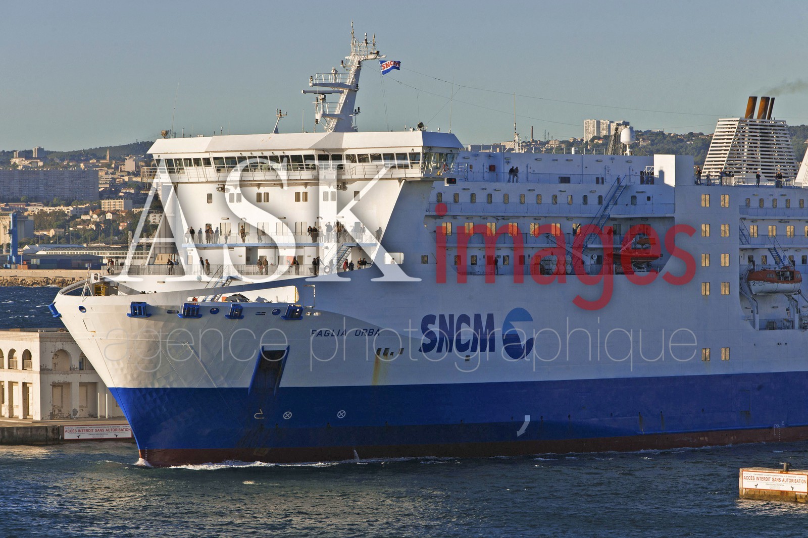 | Description | The ship of the SNCM company leaving the Port Autonome de Marseille, Bouches du Rhone, France |