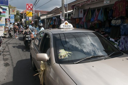 Taxi in the Streets of Kuta. Indonesia, Bali, touristic streets of Kuta. Bali. Most of Lombok's south coasts offer surf-seekers challenging waves of various grades.