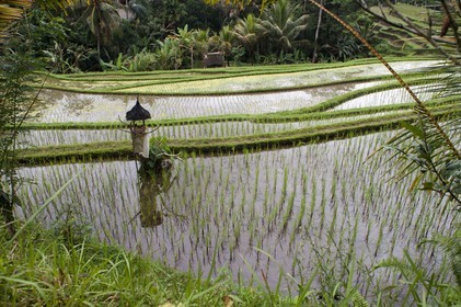 Indonesia, Bali, terraced rice fields, farmhouses,