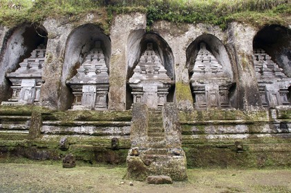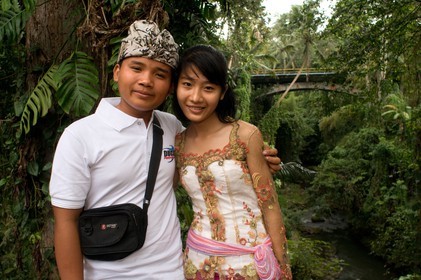 A couple in front of the temple Pura Gunung Lebah. Ubud. Bali. Gunung Lebah was constructed in the 8th century by Danghyang Markandya, one of the most revered sages in Bali. Markandya is believed to be responsible for introducing Hinduism to Bali