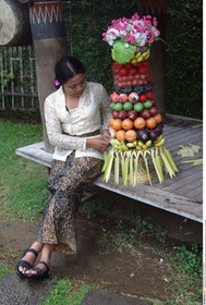 Indonesia, Bali, Mas, temple festival, people praying, odalan, Kuningan holiday,