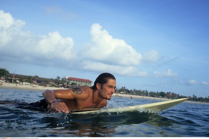 Lessons of surf on the beach of Kuta. Surfing lessons. Bali. Kuta is a coastal town in the south of the island of Lombok in Indonesia.