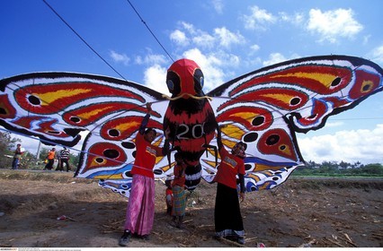 Two young people having fun in a field near the fishing village of Amed East Bali culture. Amed is a long coastal strip of fishing villages in East Bali. Amed refers to a long stretch of coast running from the village of Cucik about 14 km eastwards incorporating the seven villages