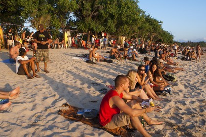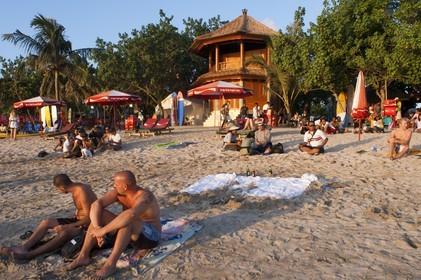 Bali. Kuta is a coastal town in the south of the island in Indonesia. Sunset over sea with tourists