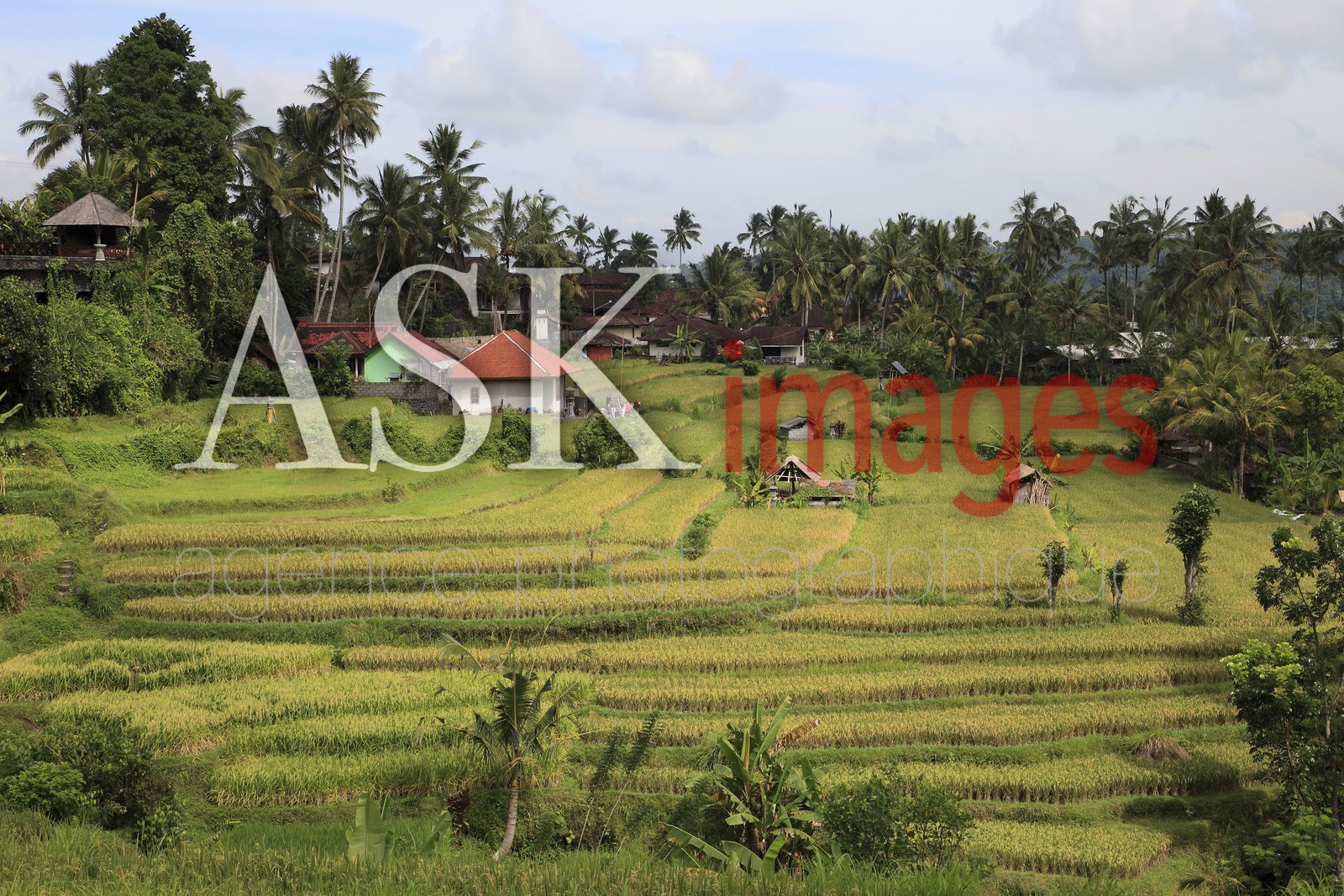 Indonesia, Bali, terraced rice fields, farmhouses,