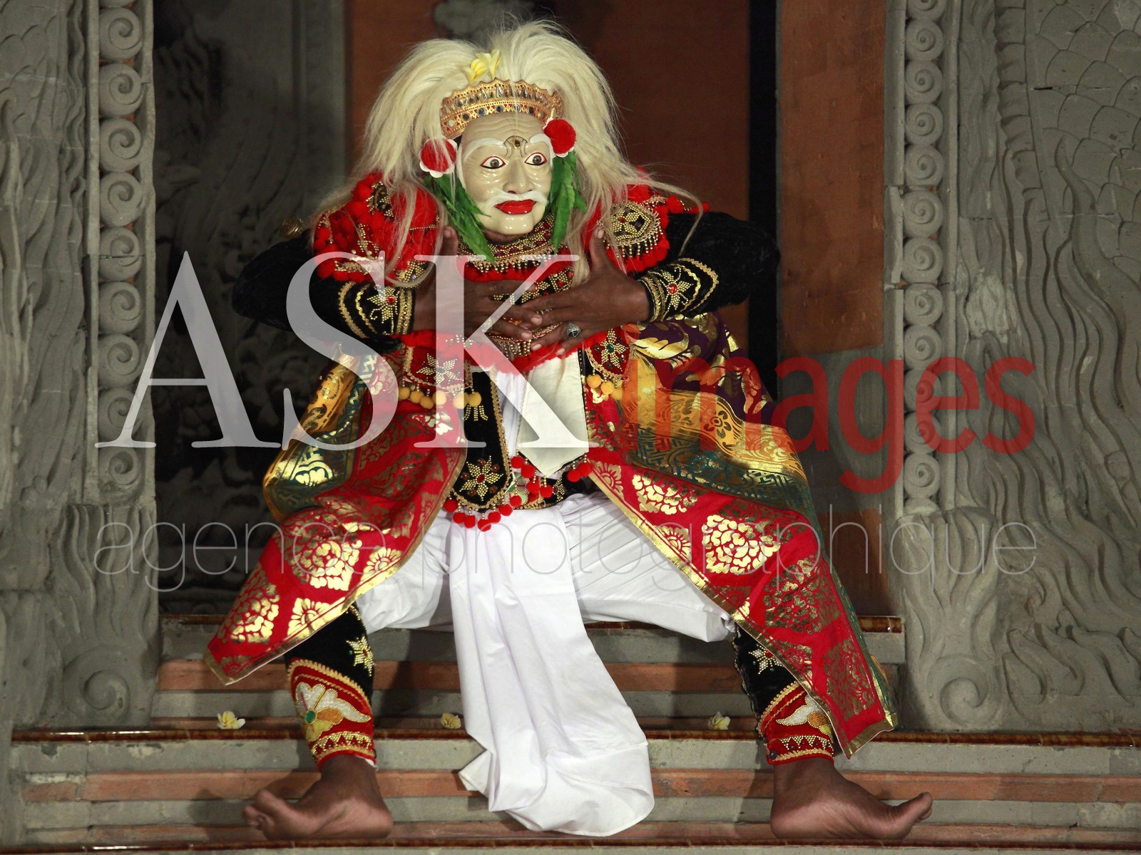 Indonesia, Bali, Ubud, masked traditional dancer,