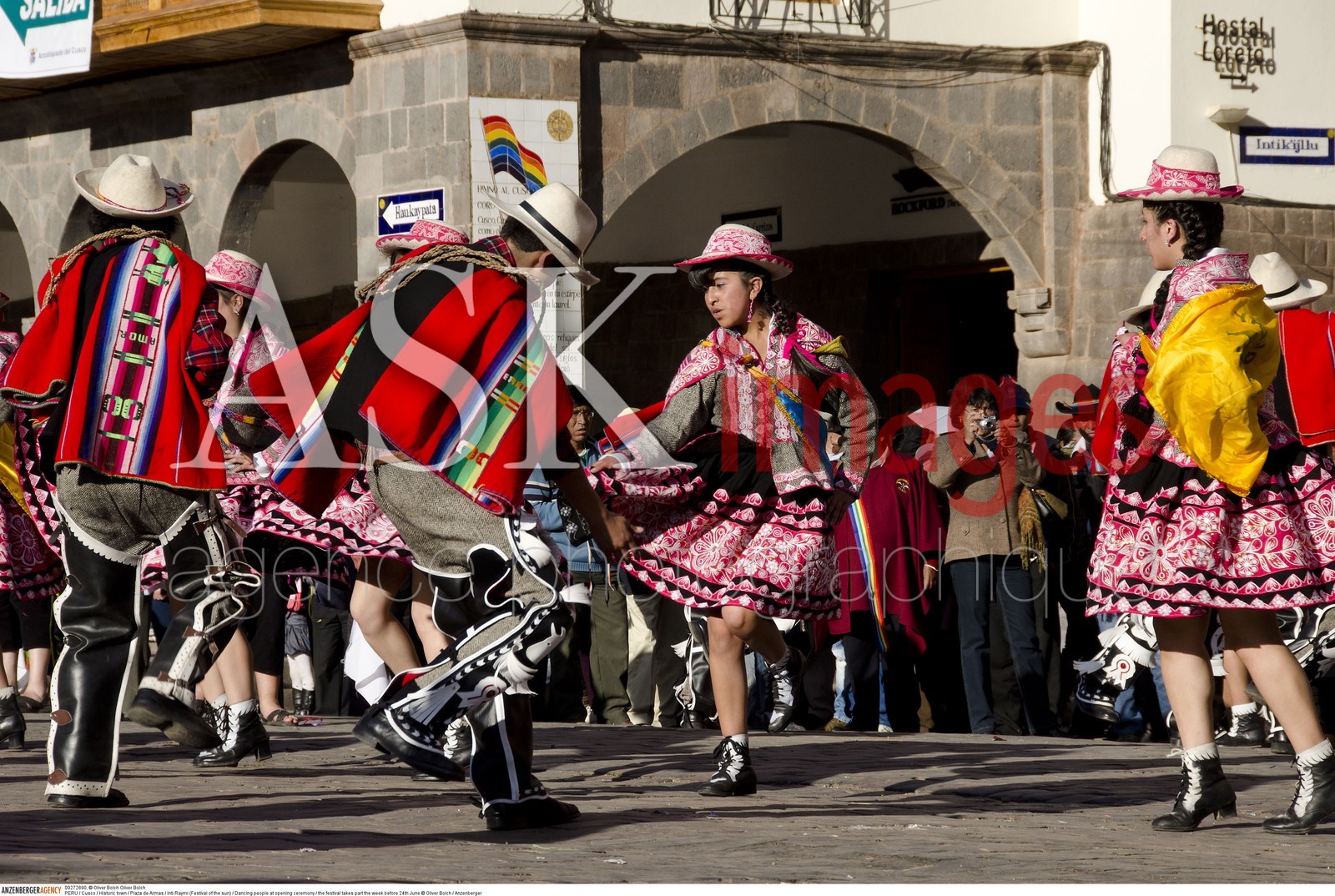| Description | PERU / Cusco / Historic town / Plaza de Armas / Inti Raymi (Festival of the sun) / Dancing people at opening ceremony / the festival takes part the week before 24th June..© Oliver Bolch / Anzenberger |