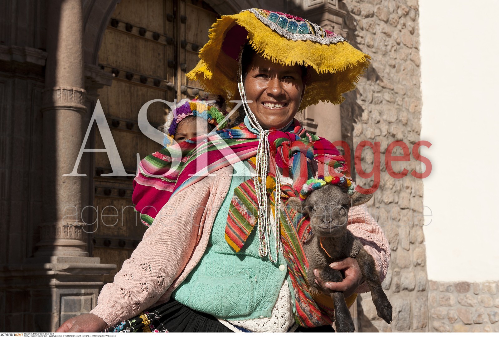 | Description | PERU / Cusco / Historic town / Quechua woman in traditional dress with child and goat..© Oliver Bolch / Anzenberger |