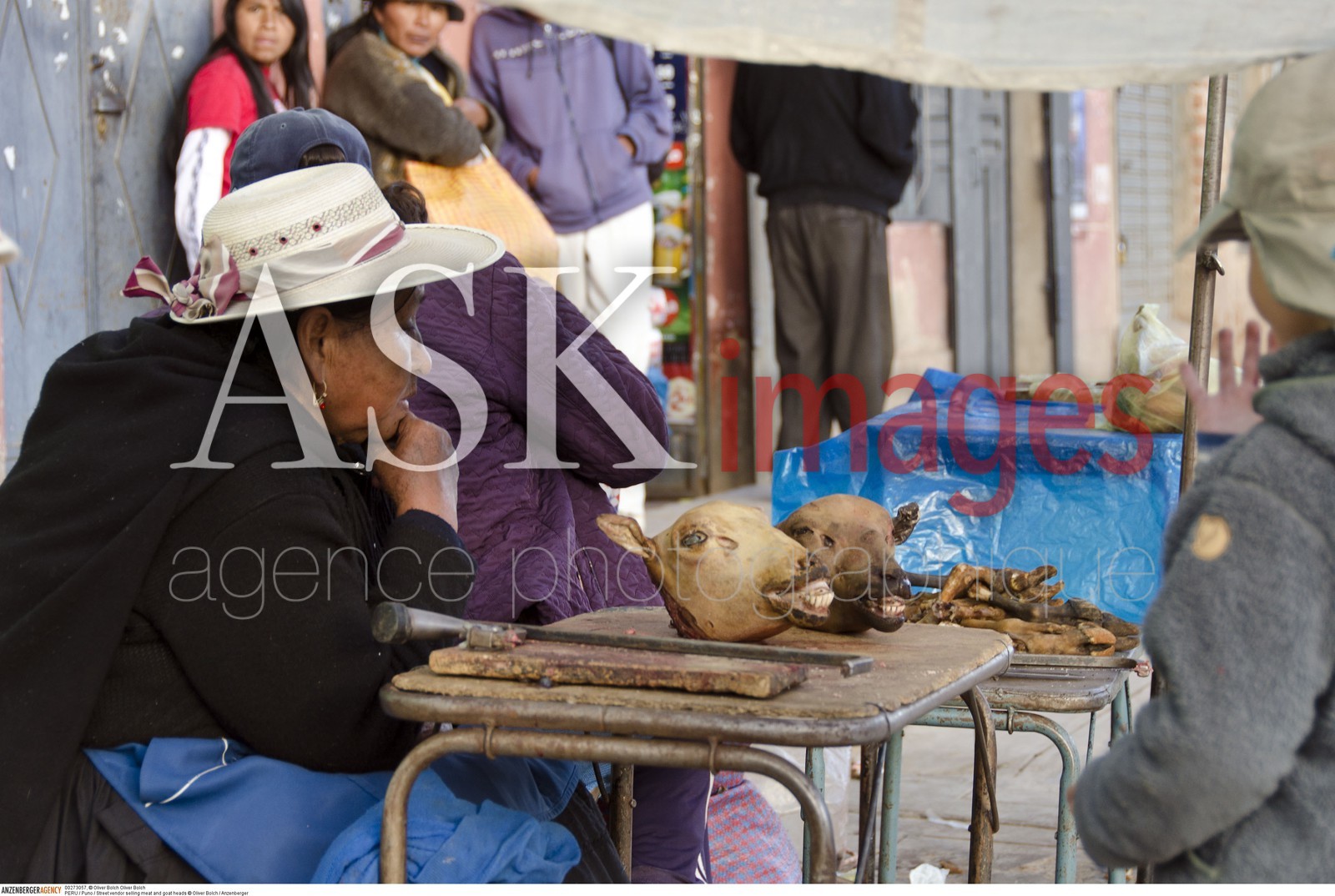 | Description | PERU / Puno / Street vendor selling meat and goat heads..© Oliver Bolch / Anzenberger |