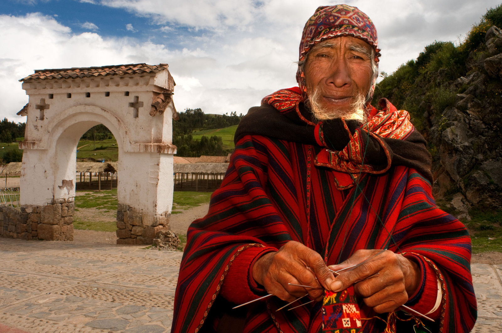 | Description | An artisan weaves a hat on the streets of Chinchero in the Sacred Valley near Cuzco, Chinchero is a small Andean Indian village located high up on the windswept plains of Anta at 3762m about 30km from Cusco. |