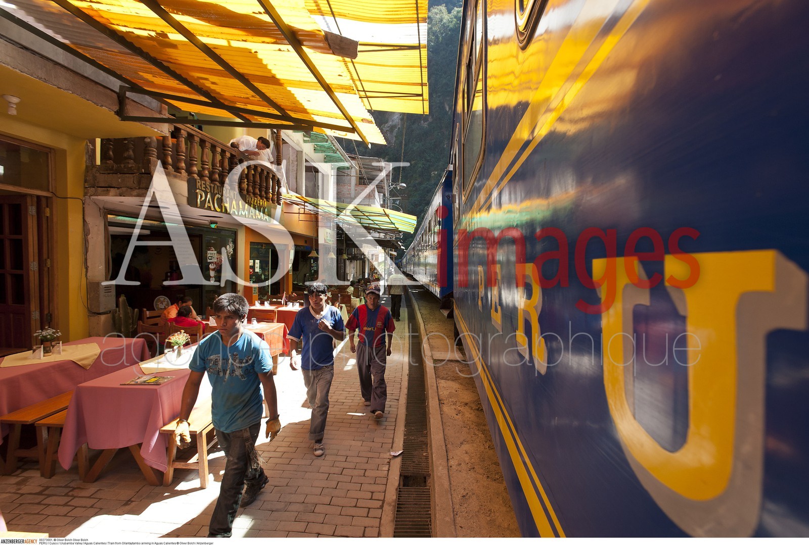 | Description | PERU / Cusco / Urubamba Valley / Aguas Calientes / Train from Ollantaytambo arriving in Aguas Calientes..© Oliver Bolch / Anzenberger |
