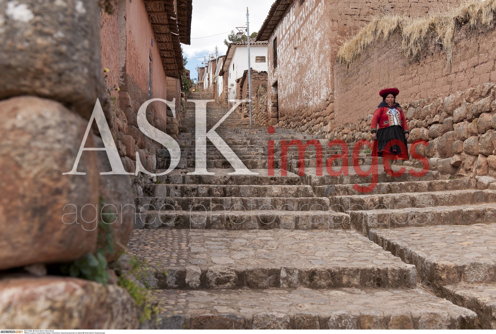 | Description | PERU / Cusco / Urubamba Valley / Chinchero / Quechua woman on stairs..© Oliver Bolch / Anzenberger |