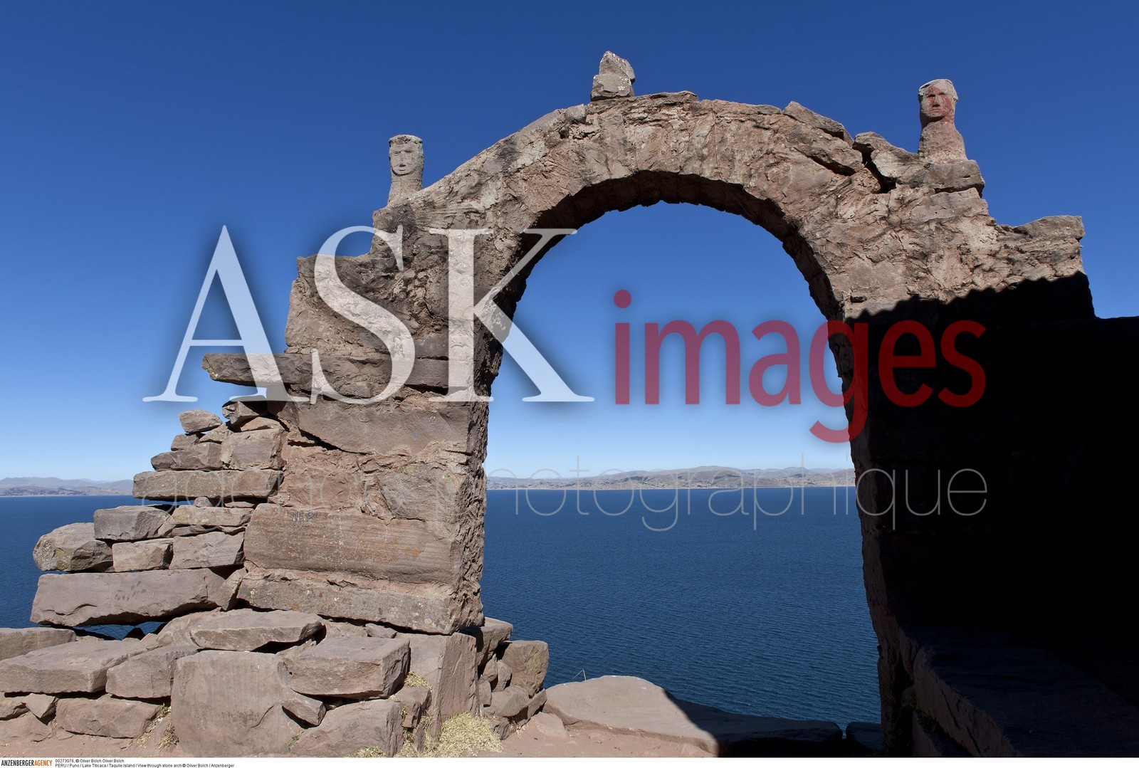DescriptionPERU / Puno / Lake Titicaca / Taquile Island / View through stone arch ..© Oliver Bolch / Anzenberger