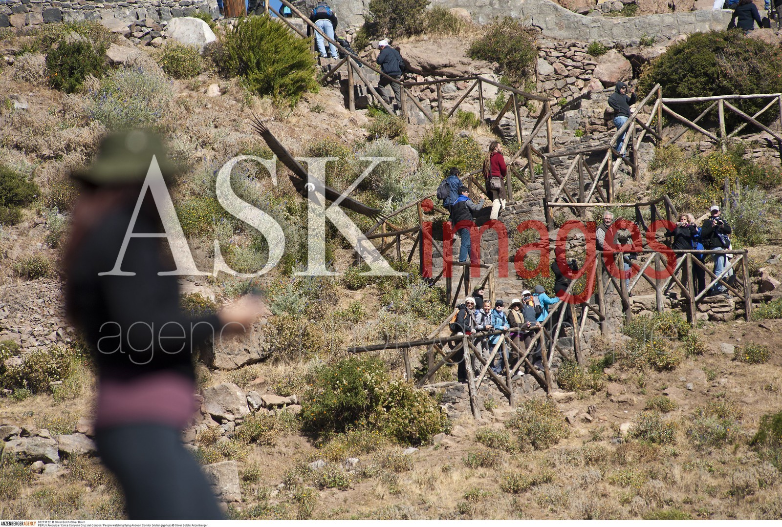 | Description | PERU / Arequipa / Colca Canyon / Cruz del Condor / People watching flying Andean Condor (Vultur gryphus)..© Oliver Bolch / Anzenberger |