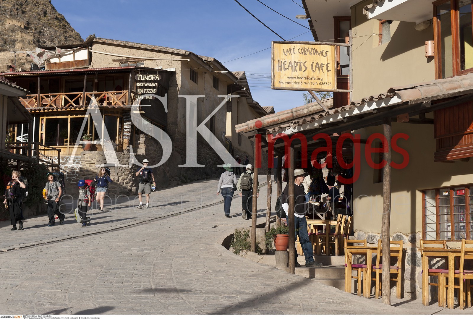 | Description | PERU / Cusco / Urubamba Valley / Ollantaytambo / Street with restaurants..© Oliver Bolch / Anzenberger |