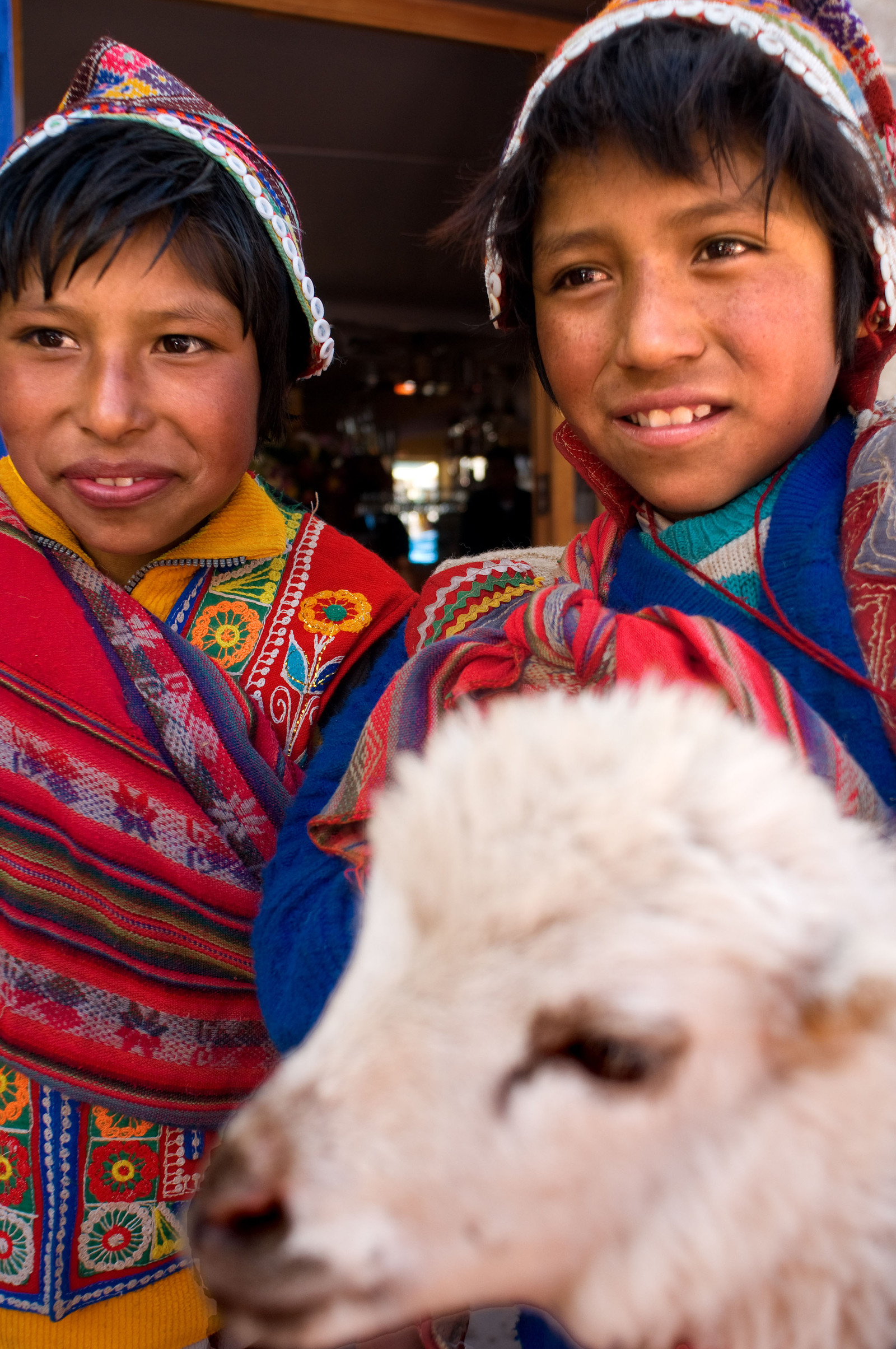 | Description | Children dressed in traditional costume in Pisac Sunday market day, Sacred Valley, Pisac, or Pisaq in Quechua, is a small town about 35 km from Cuzco. |