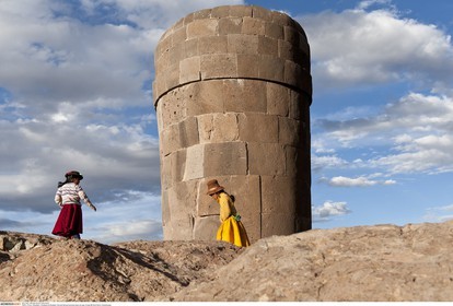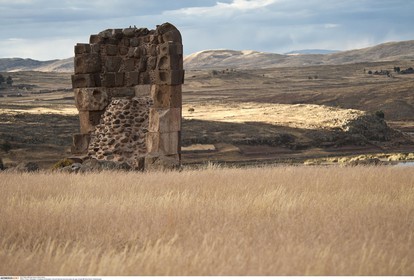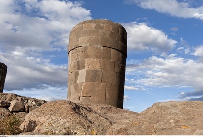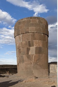 PERU / Puno / Sillustani / Chullpas at Sillustani / Ancient Aymara funerary tower at Lago Umayo..© Oliver Bolch / Anzenberger Perou *** Peru