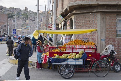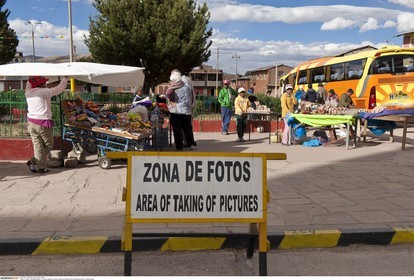 PERU / Cusco / Andahuaylillas / Colonial village / Souvenir stand at Plaza de Armas..© Oliver Bolch / Anzenberger Perou *** Peru