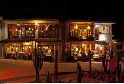 PERU / Cusco / Urubamba Valley / Ollantaytambo / Street with restaurants at night..© Oliver Bolch / Anzenberger Perou *** Peru