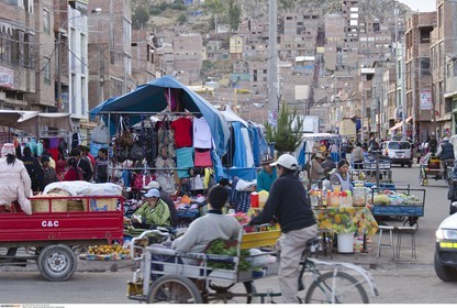 PERU / Cusco / Urubamba Valley / Ollantaytambo / Street with restaurants..© Oliver Bolch / Anzenberger Perou *** Peru