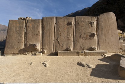 PERU / Cusco / Urubamba Valley / Ollantaytambo / Archaeological Park Ollantaytambo / Inca ruins / Wall of the six monoliths on Temple hill..© Oliver Bolch / Anzenberger Perou *** Peru