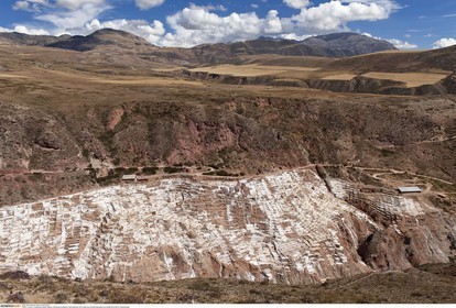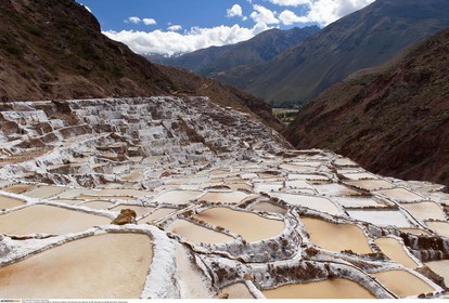 PERU / Cusco / Urubamba Valley / Maras / Salineras de Maras / Salt extraction from salty river at salt evaporation ponds..© Oliver Bolch / Anzenberger Perou *** Peru