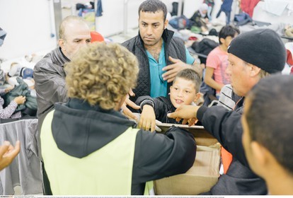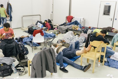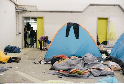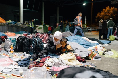 • Austria / Burgenland / Nickelsdorf / 14.09.2015 / Thousands of refugees who arrived from Hungary have to stay and wait in Nickelsdorf because of governments' temporary decision to close and control the borders in some European countries. Although the situation is very hard and the town is overwhelmed, refugees are warm welcomed by civil helpers and NGO workers who constantly provide help for the ones in need...© Florian Rainer / Anzenberger