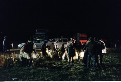 Refugies, frontiere Autriche/Hongrie, Nickelsdorf