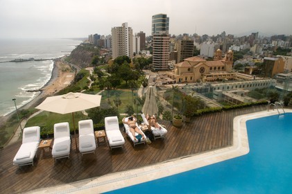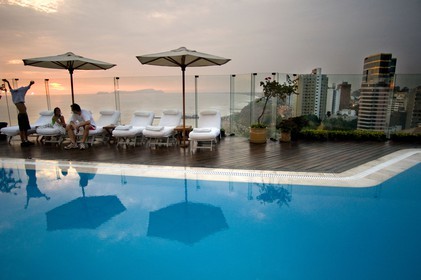 • Miraflores Park Hotel chain Orient Express Belmond, Lima, Peru, On the 11th floor is the pool with magnificent and exceptional views of the city and the sea, In the context of airlines, "business class" means "how I would like to fly if someone else were paying the bill" The Belmond Miraflores Park Hotel is an example of the kind of elegance and pampering ostensibly intended to minimize the discomfort of business travelers, but also quite enjoyable as an end in itself.