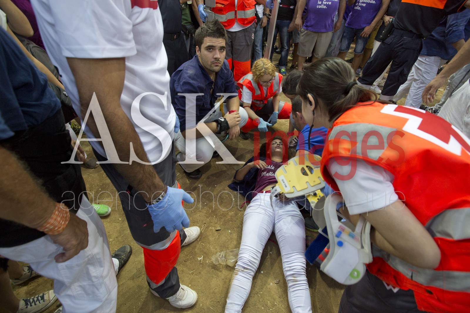 | Description | Spain, Tarragona, the XXV contest of Castells in Tarragona, Catalonia, is held in the arena Tarraco placa, after falling down a woman is lying on the floor |