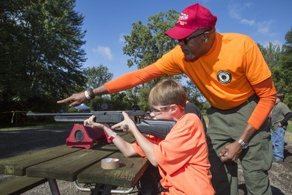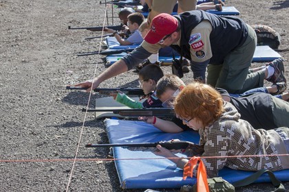 • New Boston, Michigan - Boy Scouts shoot BB guns at a weekend gathering at a suburban Detroit park..© Jim West / The Image Works