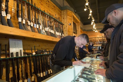 • Milford, Michigan - A worker looked over paperwork for a gun buyer's background check as customers crowded the Huron Valley Guns store on Gun Appreciation Day. Pro-gun groups gathered at gun stores across the nation to buy weapons and to oppose proposed limits on gun ownership. Assault weapons at this store were in such short supply that customers had to enter a lottery for the right to buy one..January 21 , 2013