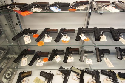 • Milford, Michigan - Handguns on display at the Huron Valley Guns store on Gun Appreciation Day. Pro-gun groups gathered at gun stores across the nation to buy weapons and to oppose proposed limits on gun ownership. Assault weapons at this store were in such short supply that customers had to enter a lottery for the right to buy one..January 21 , 2013