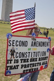 • Washington, DC - Pro-gun activists rally near the Washington Monument..© Jim West / The Image Works