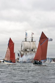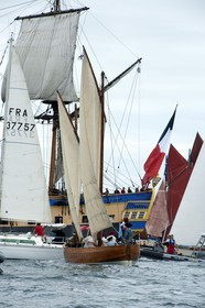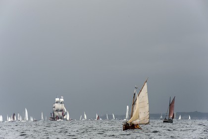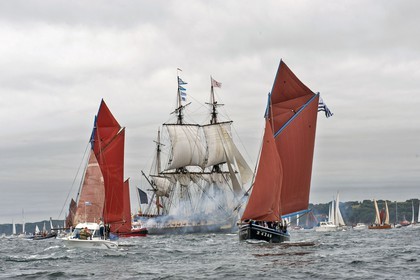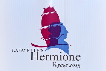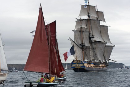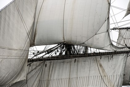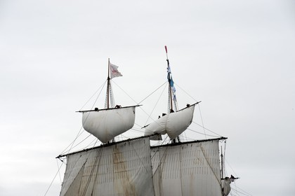 The three mats the Hermione, exact replica of the Lafayette 's boat in Goulet de Brest, Bretagne, France, August 2015 Fregate l'Hermione, Goulet de Brest Aout 2015