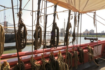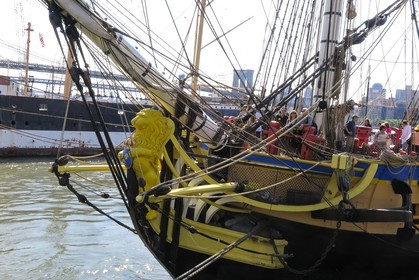 The three mats the Hermione, exact replica of the Lafayette 's boat in New York, USA French fregate, l'Hermione