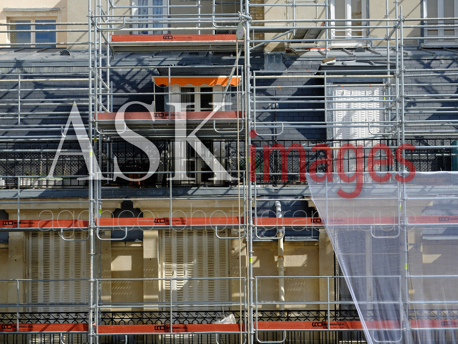 | Description | Echafaudage ravalement immeuble, Paris *** Scaffolding building renovation, Paris |