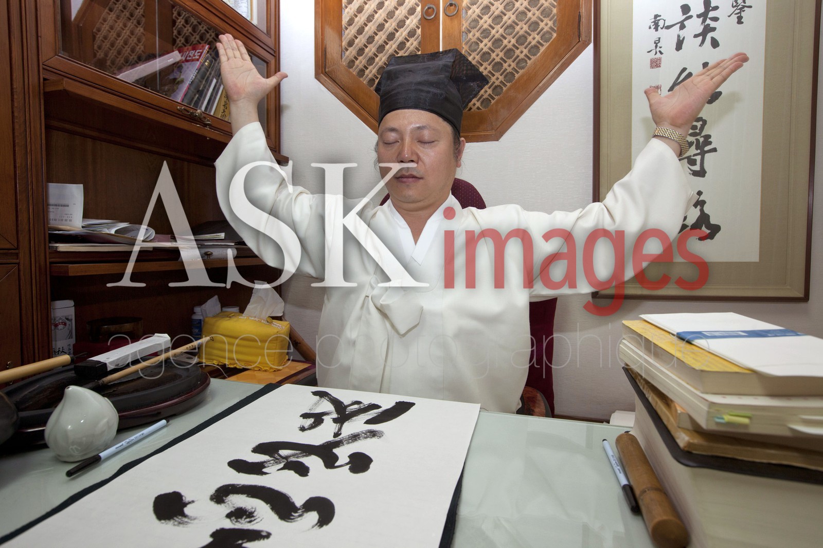 DescriptionSEOUL : COREE DU SUD *** Local Caption *** dans son cabinet de consultation,LEE HAN-GUK se ressource