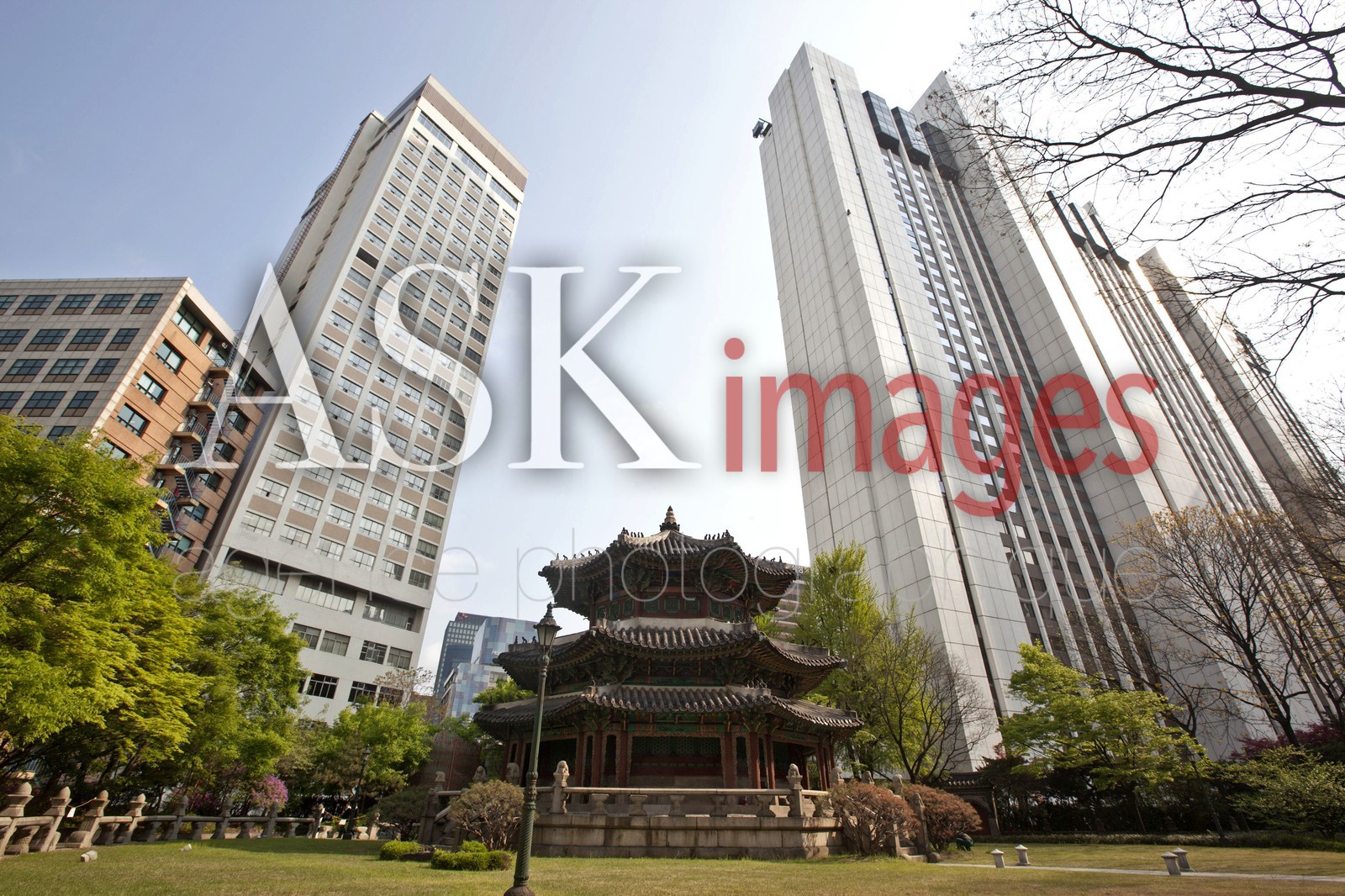 | Description | SEOUL : COREE DU SUD *** Local Caption *** Des hautes tours encadrent ce petit temple hexagonal au pied du WESTIN CHOSUN |