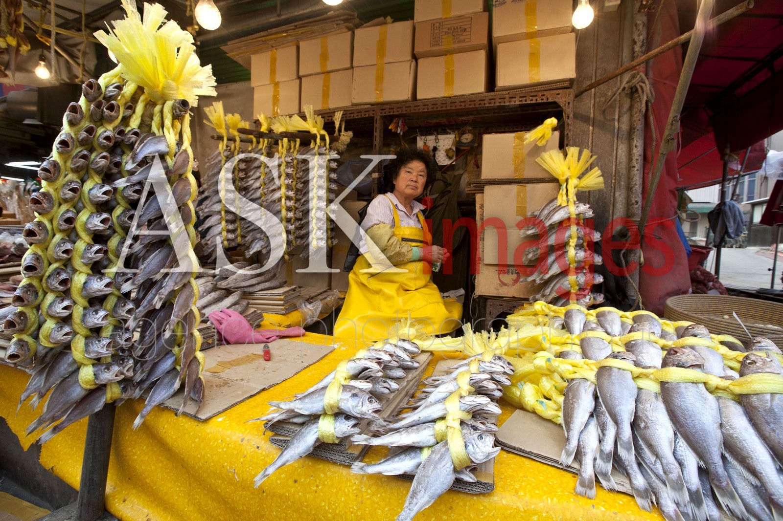 | Description | SEOUL : COREE DU SUD *** Local Caption *** NAMDAEMUN Market:plus grand marché traditionnel de Séoul,cette femme règne sur un banc de poissons sechés soigneusement liés entre eux par des rubans bouton-d'or |