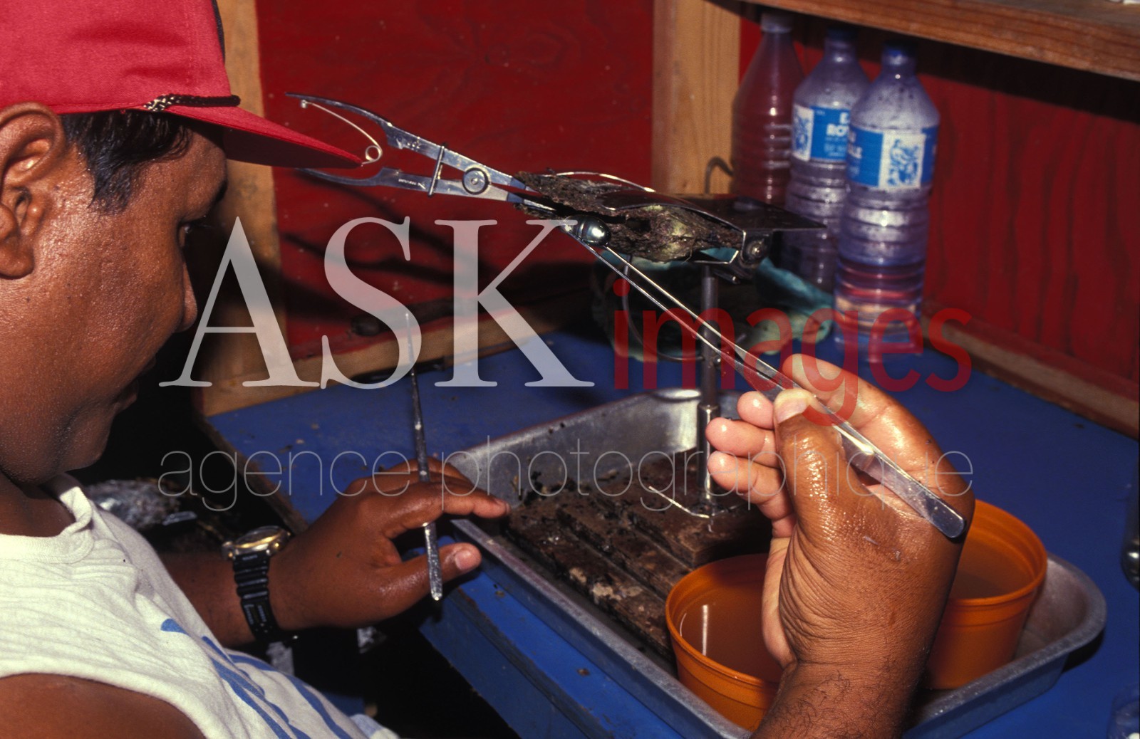 | Description | Extraction of black pearl from oyster, Tahiti, French Polynesia |