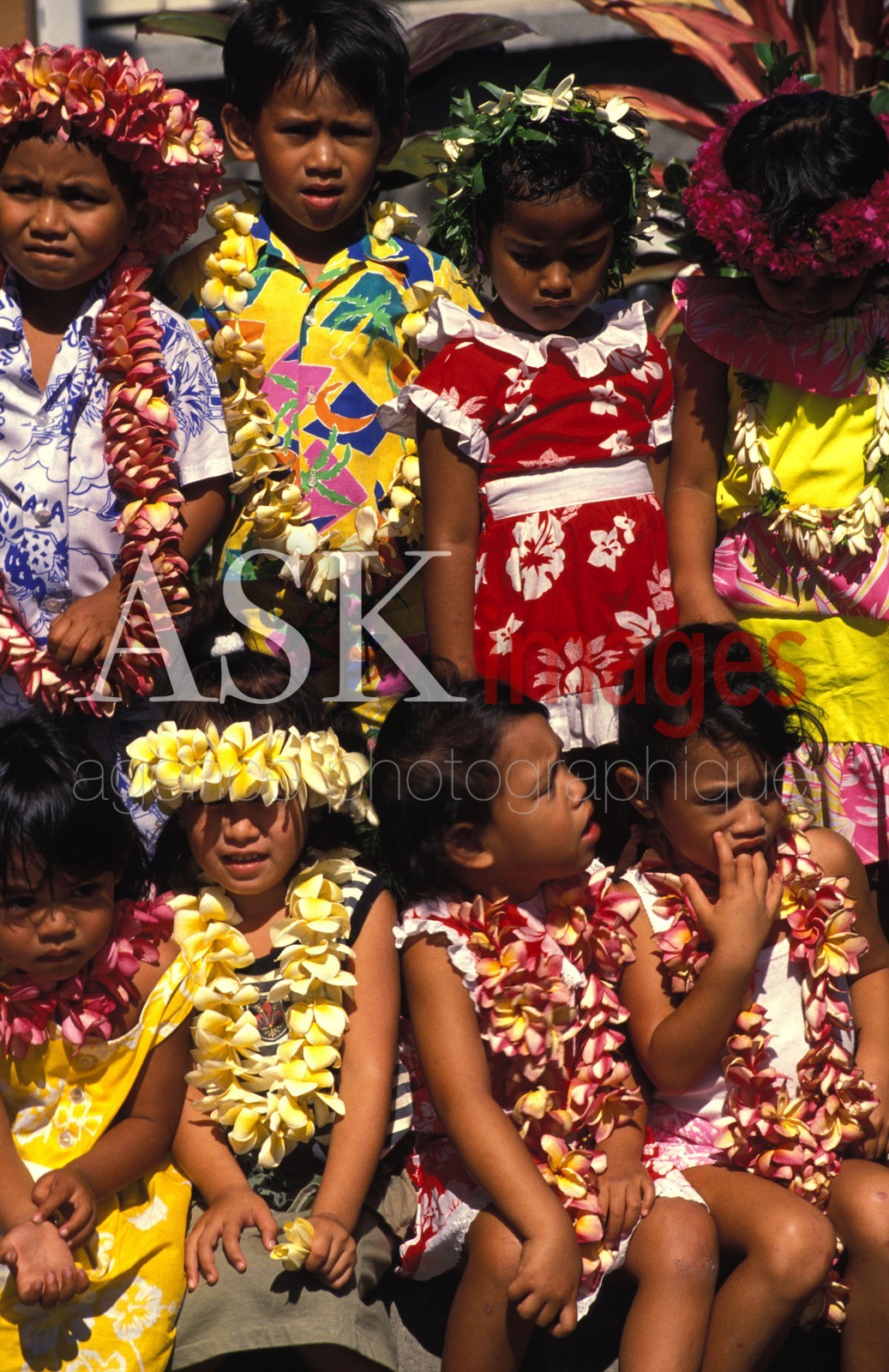 | Description | Group of child with floral wreath, Tahiti, French Polynesia |