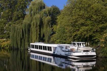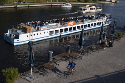 Boat excursion in the Spree river, Berlin. Spree, Landwehrkanal and Havel‚ Berlin is crossed by a multitude of rivers and canals.