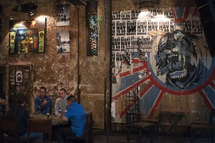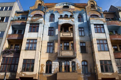 Berlin, Germany, a two-man take a beer in Zapata the Kunsthaus Tacheles. The Kunsthaus Tacheles (Art House Tacheles) was an art center in Berlin, Germany, a large (9000 square meter) building and sculpture park on Oranienburger Strasse in the district known as Mitte.