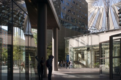inside Sony Center at Potsdamer Platz in Berlin. Potsdamer Platz literally Potsdam Square) is an important public square and traffic intersection in the centre of Berlin, Germany
